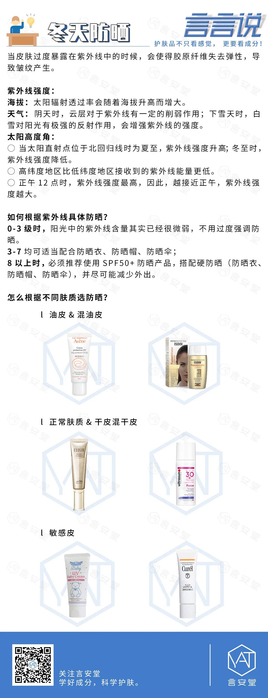 如果你是敏感皮的话,只要方法得当,也没那么麻烦,日常防晒就以硬防晒(防晒衣、帽、伞等等,不过冬天打遮阳伞看起来挺怪的,防晒衣帽可以试一试)或者物理防晒产品为主。