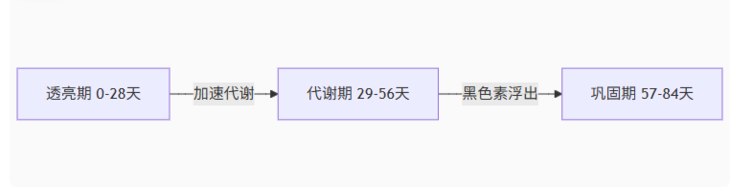① 0-28天(透亮期):皮肤先变透,黑色素开始代谢