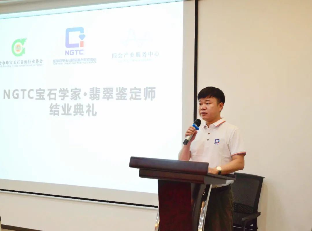 NGTC深圳培训部主任徐军先生在发言中提到:四会珠宝教学中心定位于服务四会珠宝从业人员,陆续开放线上、线下课程,逐步完善本地珠宝产业的人才评价体系,开展国家职业资格及职业技能等级认定工作,引入市、省、国家级赛事,推进产教融合,为四会珠宝玉器产业的发展提供人才保障。