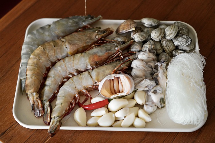 生蚝肉、虾、花甲、粉丝、金针菇、蒜、小米椒