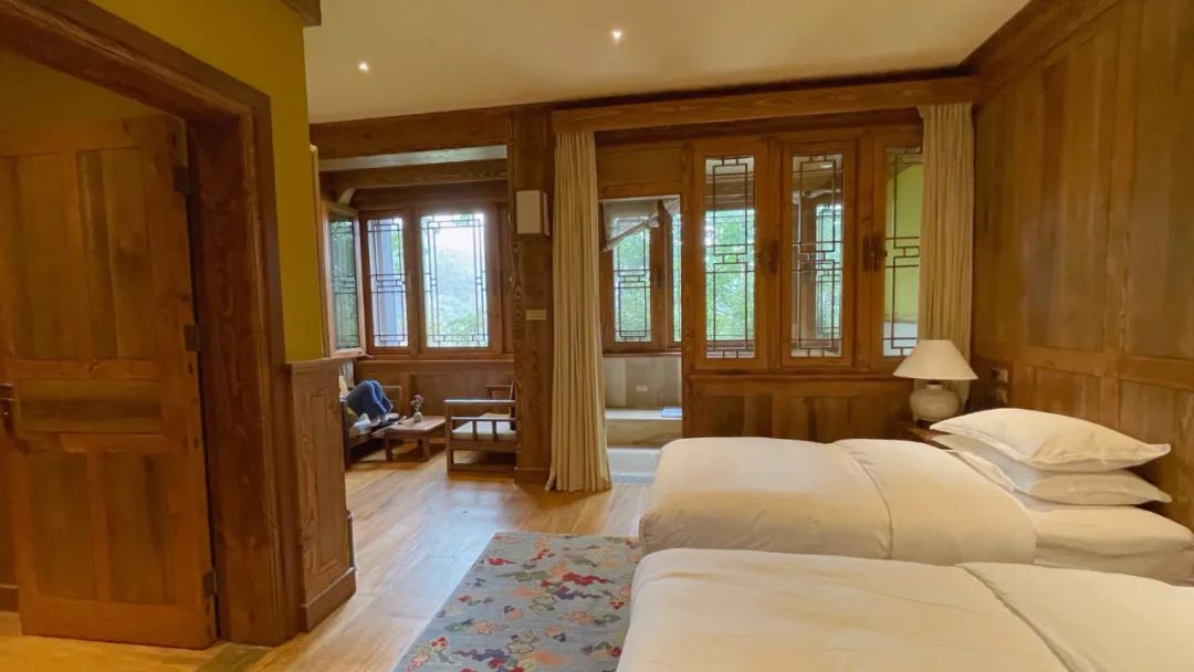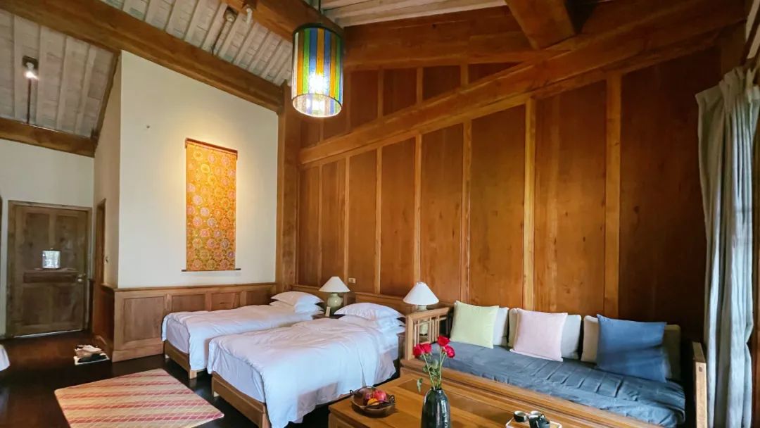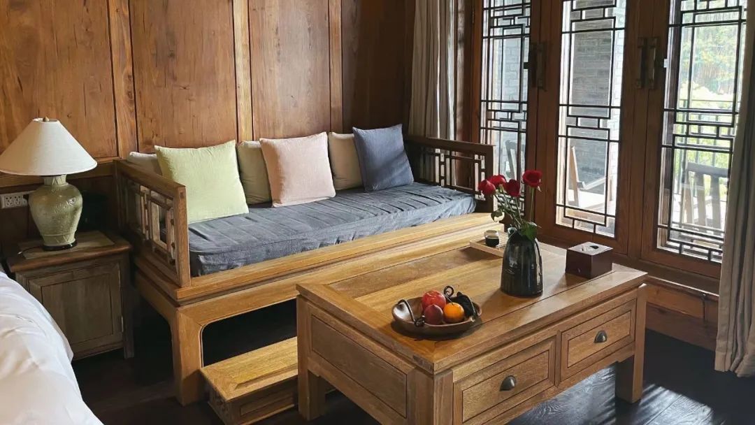每一家松赞的整体设计都很统一,全屋以木质结构为主,多为藏式风格。丽江山居却入乡随俗,结合纳西村居院落和中原官府风,再搭配四合院布局,本地体验感up。