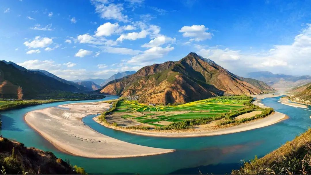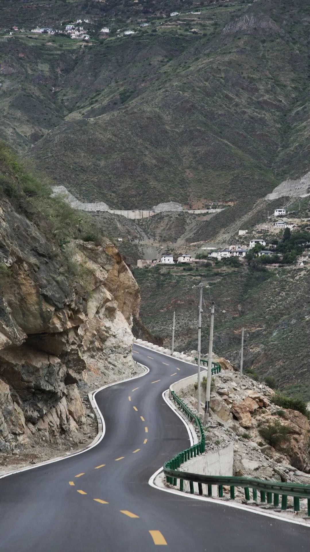 我们一路沿着金沙江驰骋,路况良好,抬头是崇山峻岭,侧边是滚滚江水,路途中经过了“长江第一湾”。江水在这里急转弯形成了一个“U”字型, 江道很宽,十分怕“炸机”的酒店君用无人机也并没有把他的全貌捕捉。