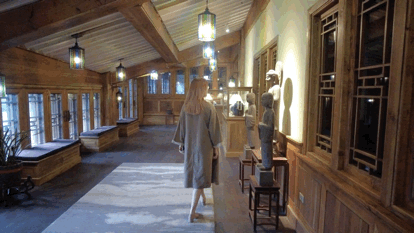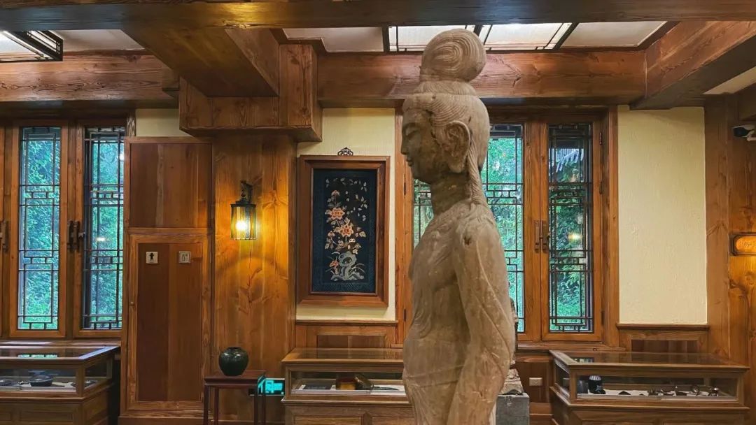 初见酒店,就被随处摆放的石雕及佛像吸引,楼道中还放置着橱窗展示从各地搜集来的富有年代感的民族艺术品,仿佛睡在了一间小型博物馆。