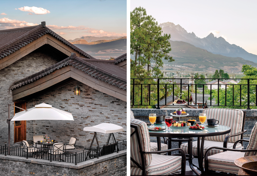 较人声鼎沸、商业成熟的古城,松赞丽江山居特意选择在保有纳西传统生活方式的小村子茨满中,从酒店窗外望去便是绵延的玉龙雪山 🏔。