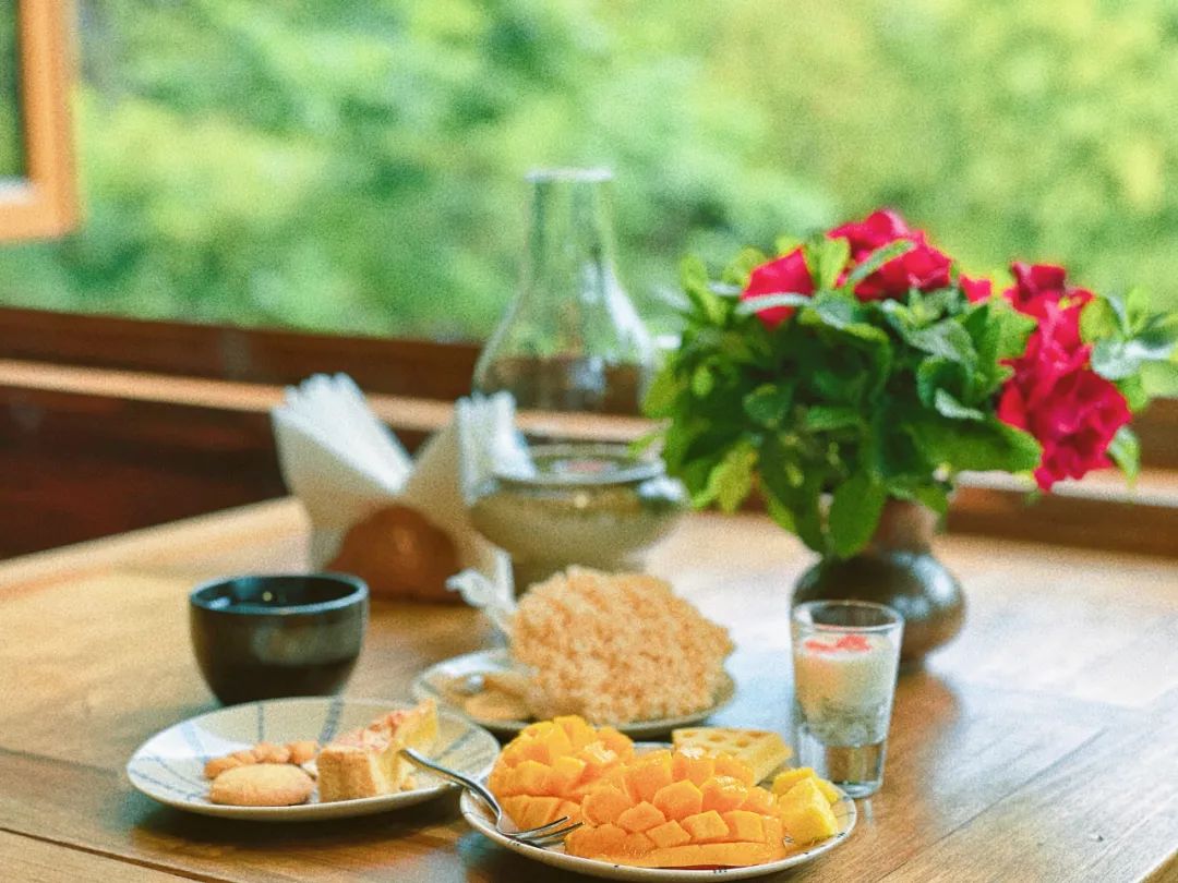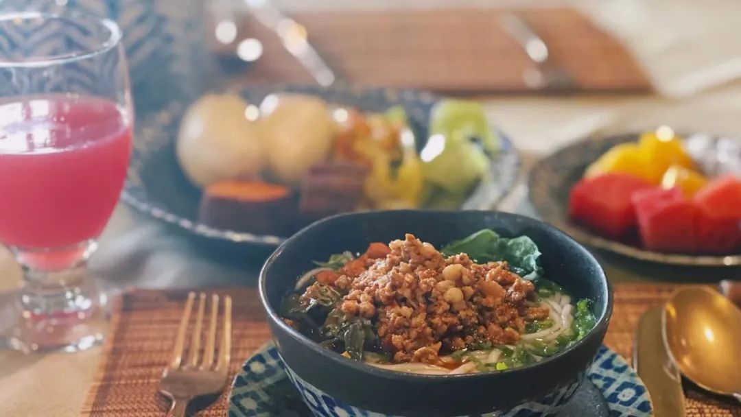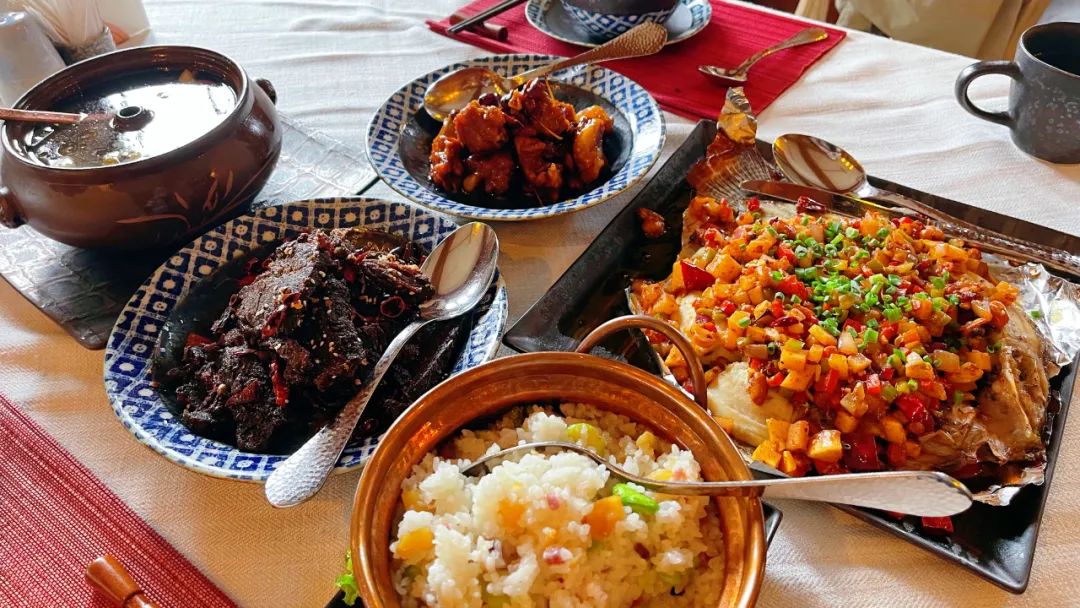 酒店食材多来于自家或周边村子里的蔬菜园,就是老一辈常说的原生态“土菜”“土鸡”。由于半家养的野猪以散落在田间的野果为食,这里的火腿也是上品,和当地的龙爪菜一起翻炒,十分美味。再配上窗外美景,秀色可餐,视觉和味觉双重享受!