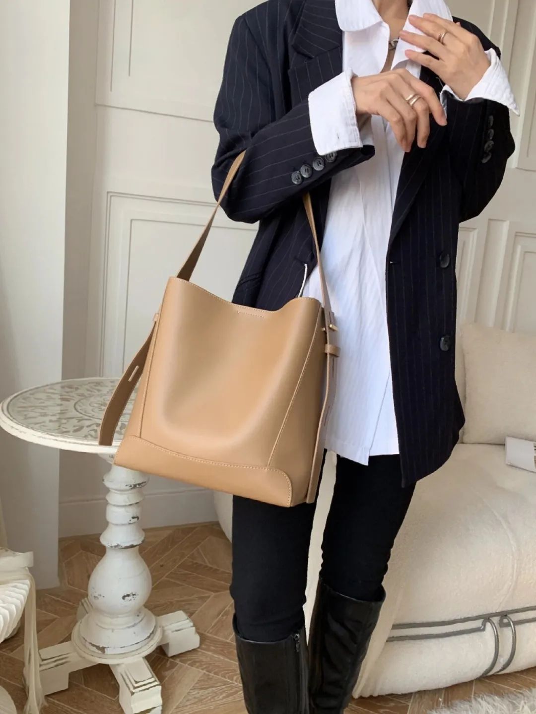 这个米白色太洋气了💥集高颜值和实用度为一体经典水桶包!一定是女生们must have包包清单里的一员‼️