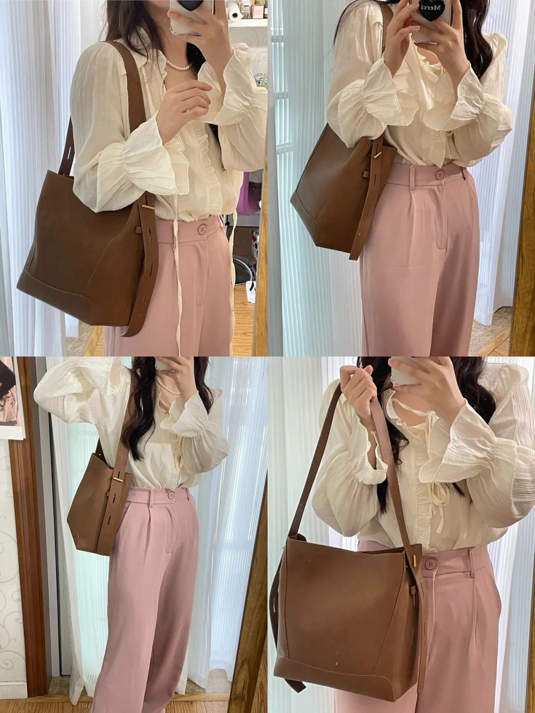 这种简洁的包型真的超级百搭不挑人,背法也多,单肩斜挎都可以。