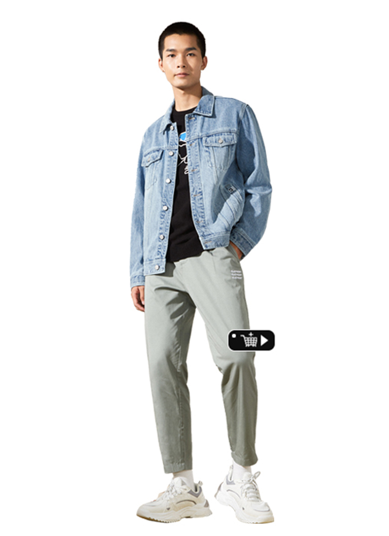 LOOK③ 白T恤 + 抽绳直筒裤 + 牛仔外套