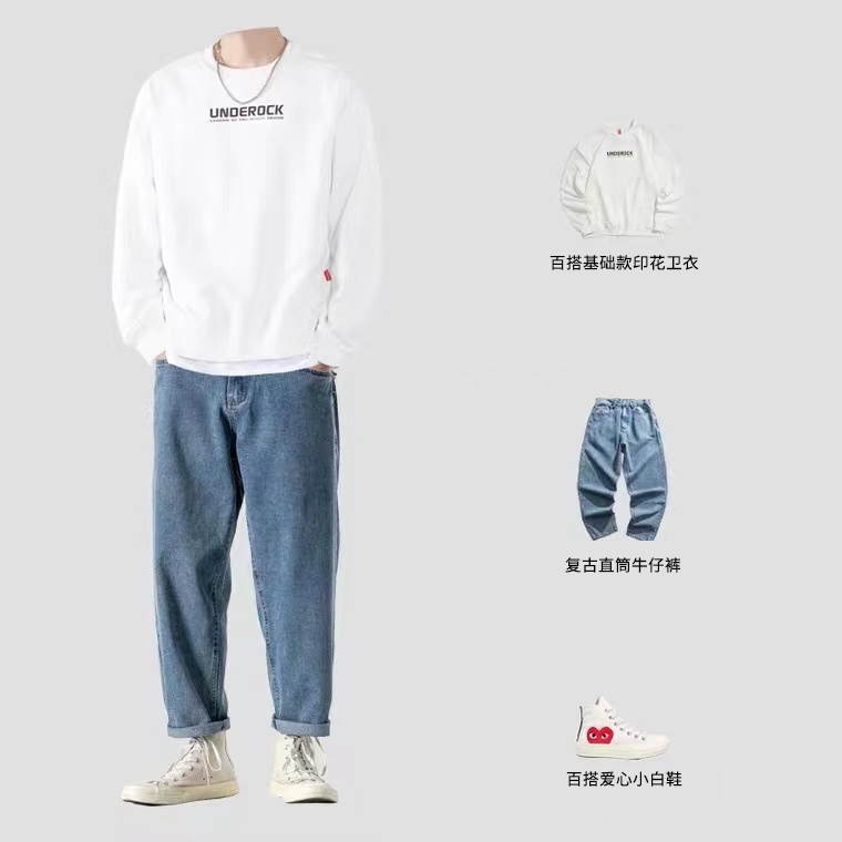 💙这种韩版的牛仔裤和卫衣更搭~详情页的模特也是搭配卫衣,家里有黑色卫衣也可以拿来搭配