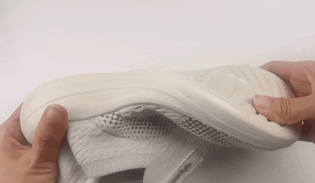鞋底弹性很好,随意折叠弯曲,都不会硬邦邦的,穿上就是一个爽字!