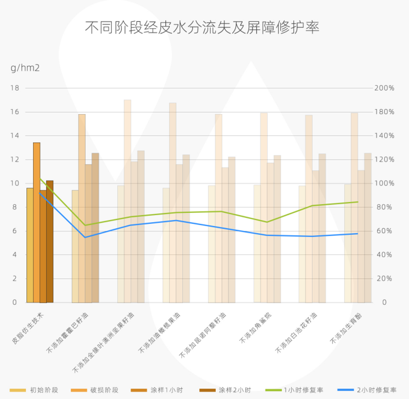 这也是943自己的一个专利TamRepair™ 皮脂膜仿生技术组合,里面的成分尤其是霍霍巴籽油和角鲨烷缺一不可,搭配后的保湿效率和屏障修护率都得到有效的提升。