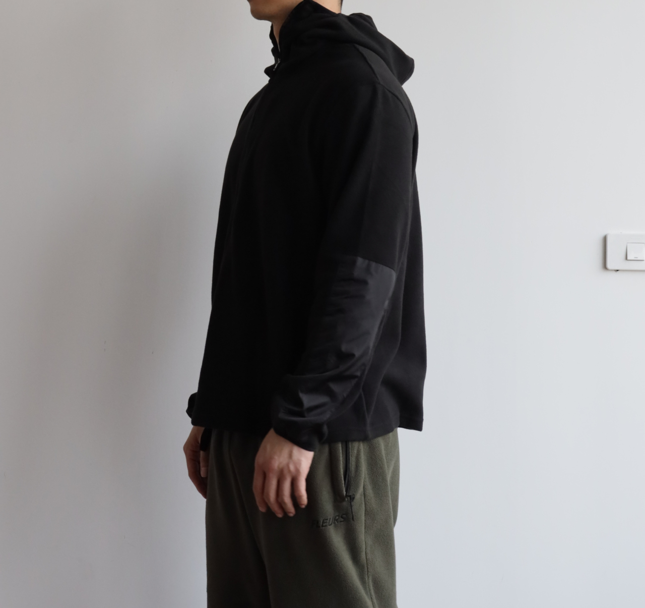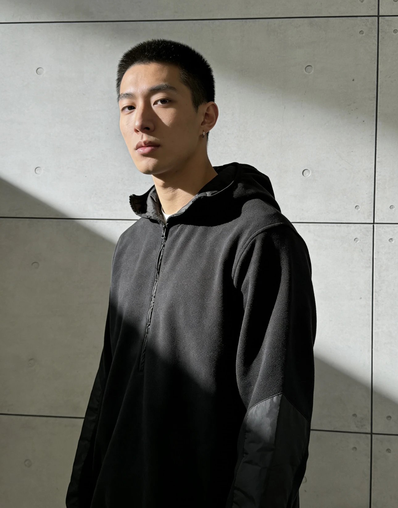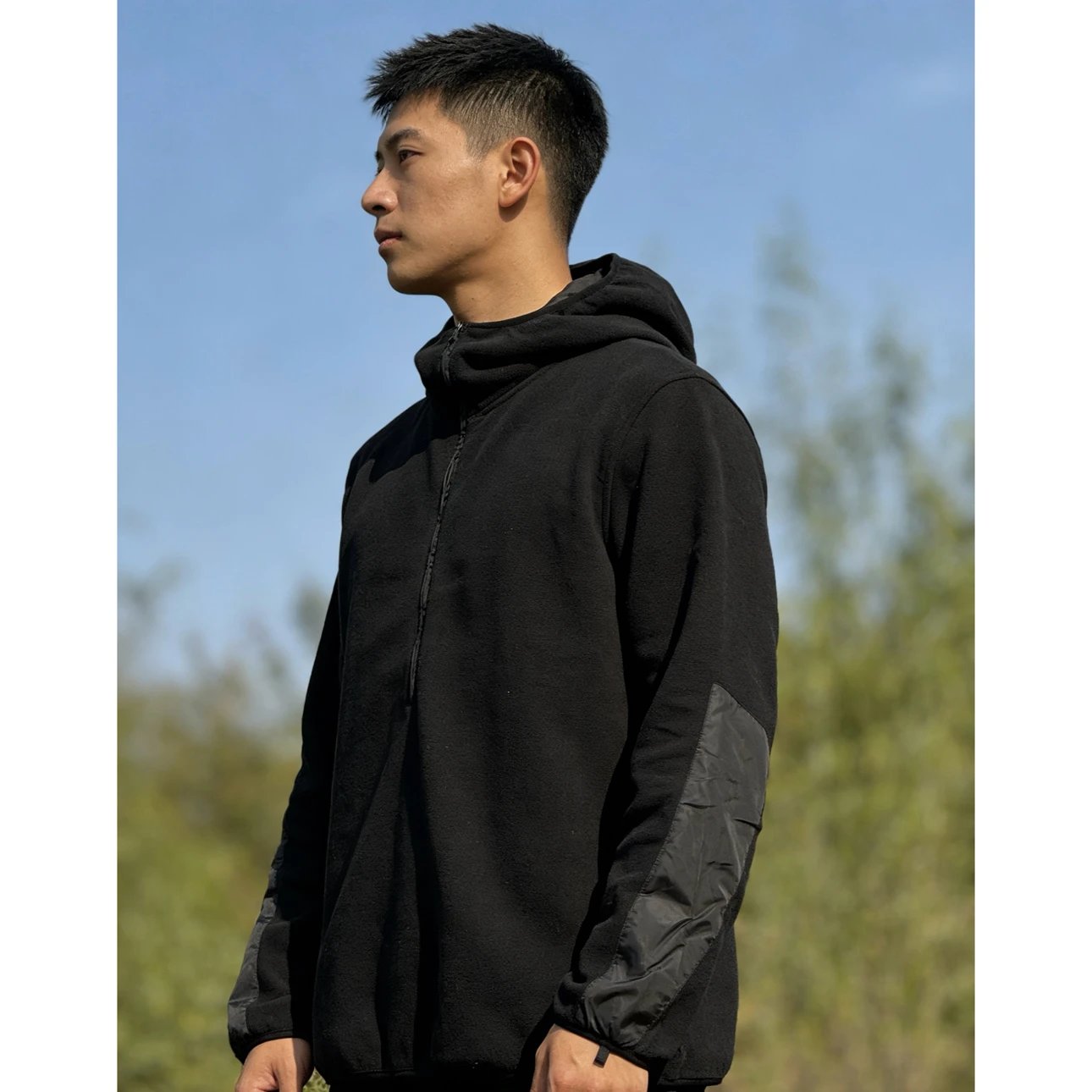 小众外贸原单 忍者帽 尼龙拼接摇粒绒半拉链连帽卫衣 男女同款