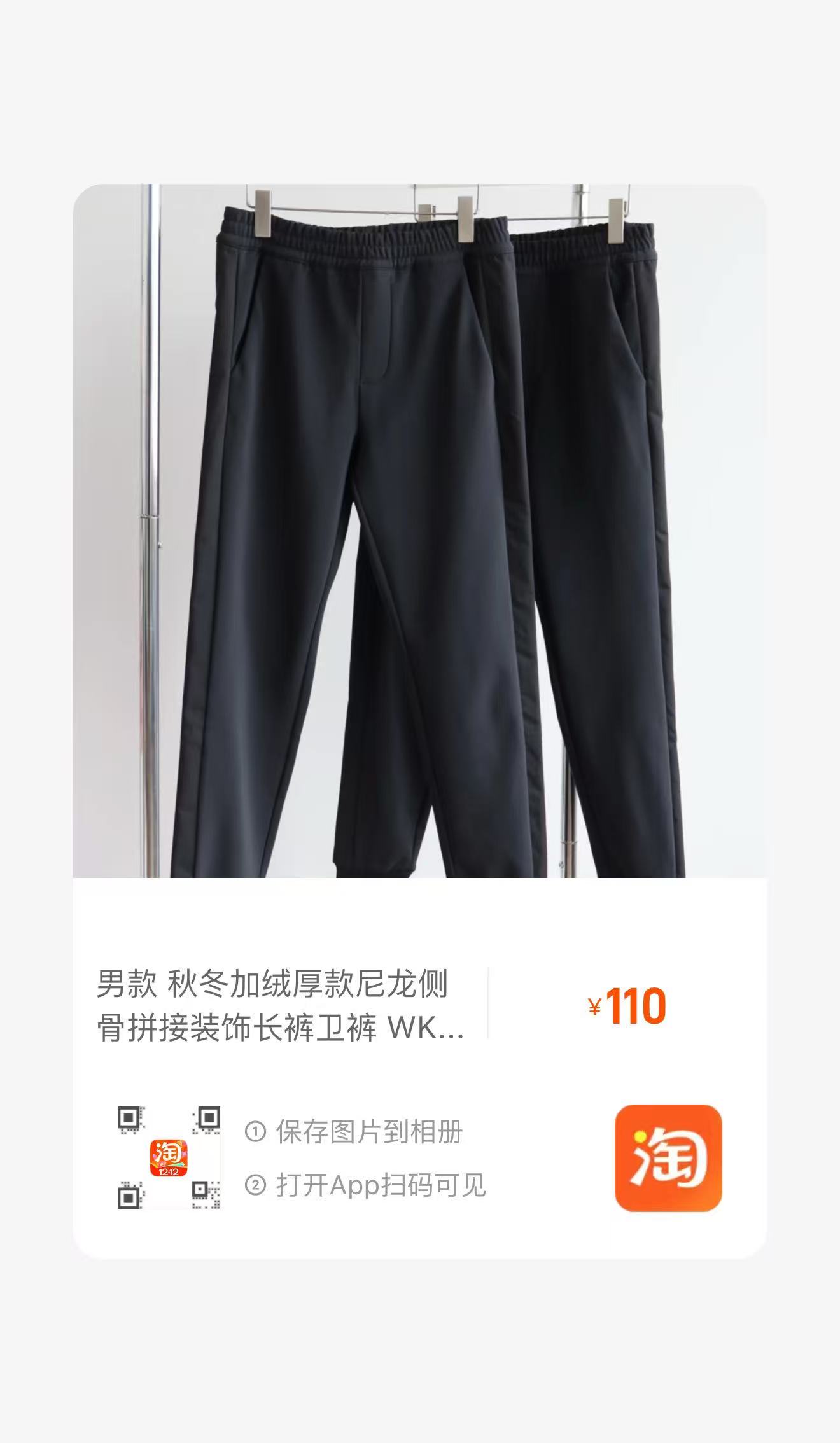 P.R.D 秋冬加绒厚款尼龙侧骨拼接装饰长裤卫裤