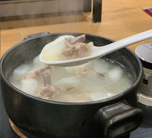 🔸食补做法:❶提前一天买好猪脊骨,筒骨、扇骨也行,洗净抹上盐 ❷隔天烧一锅开水,将腌好咸骨洗净再煮沸5分钟,捞出以便去除多余的盐分 ❸白萝卜切大块,和咸猪骨一起放入汤煲内,将白胡椒粒拍开,和瑶柱一起放入,加适量水,煲1.5小时左右即可