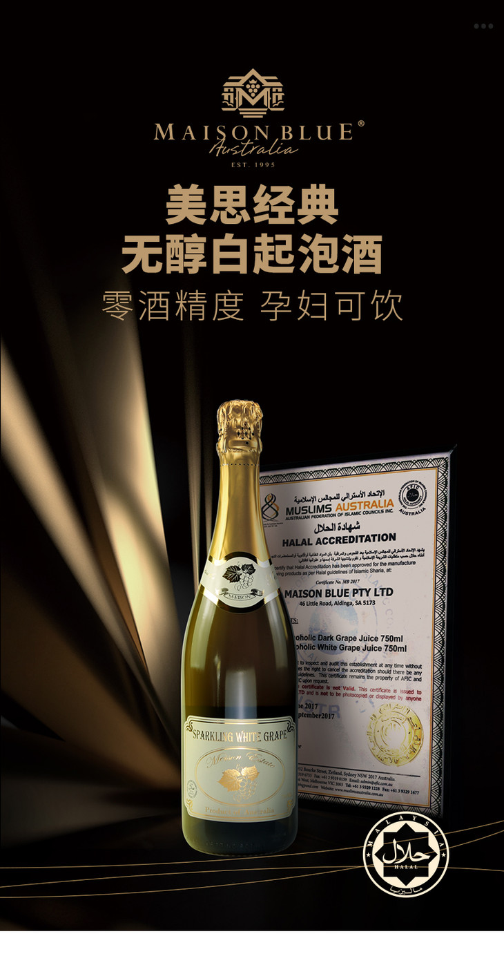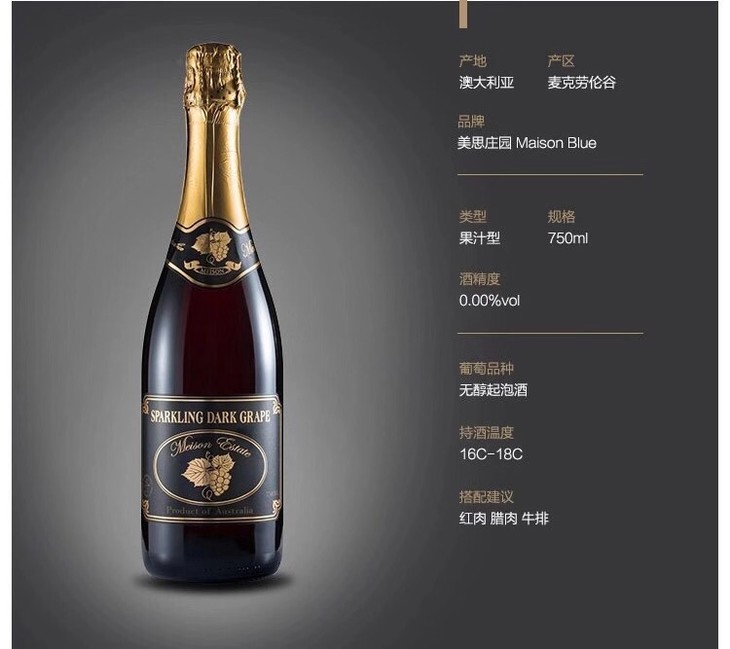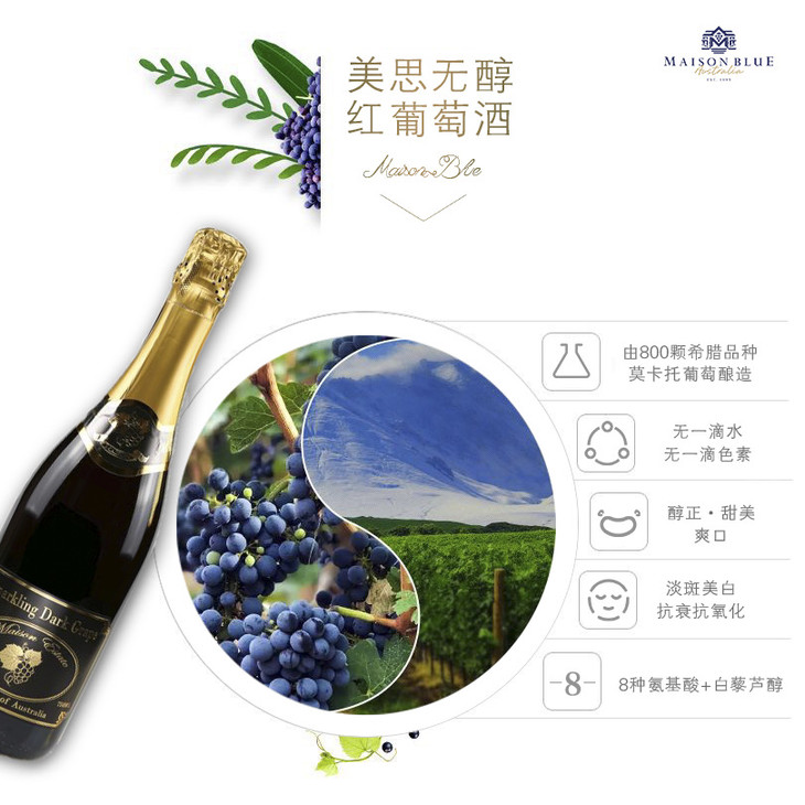 【美思庄园 澳洲原瓶进口经典无醇红起泡酒/白起泡酒】
