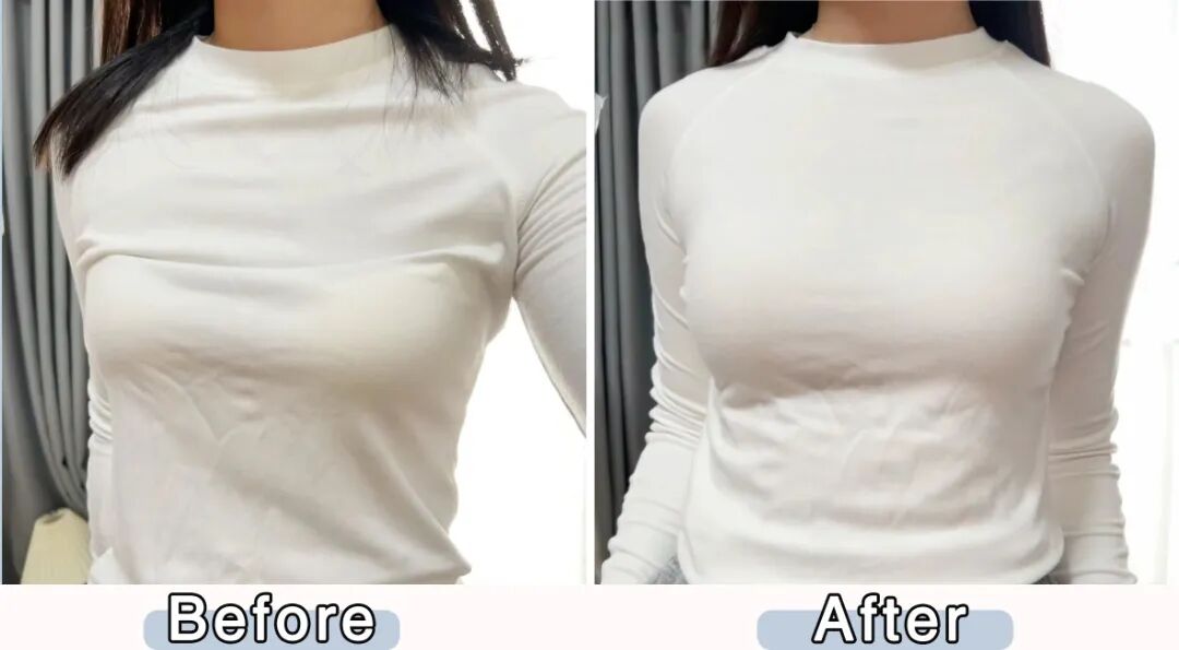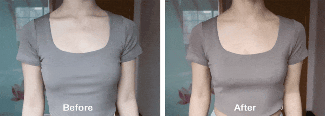 把胸部完完整整包裹得刚刚好,让胸型更正、更圆润。