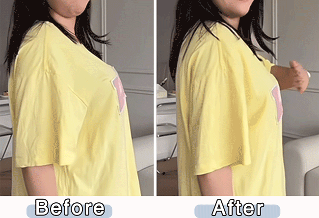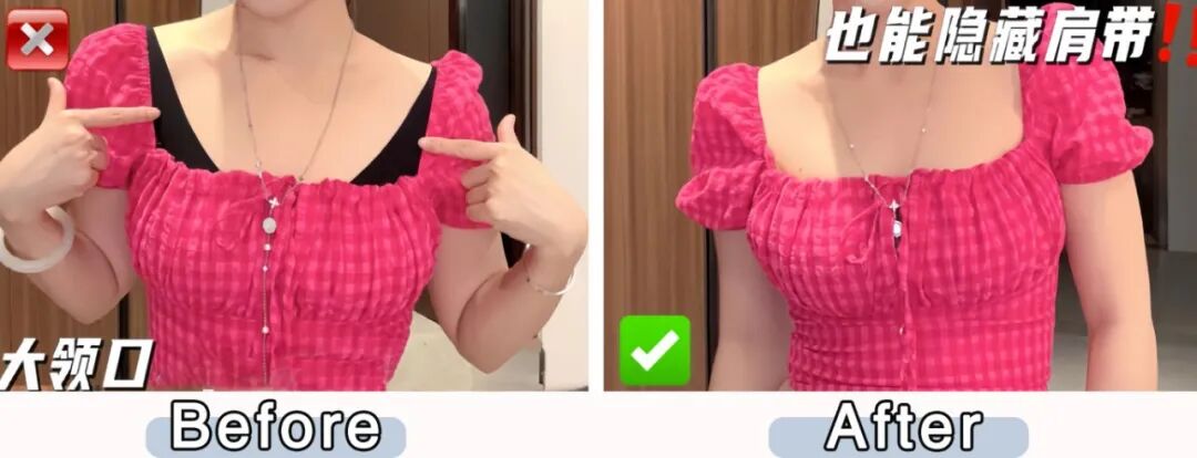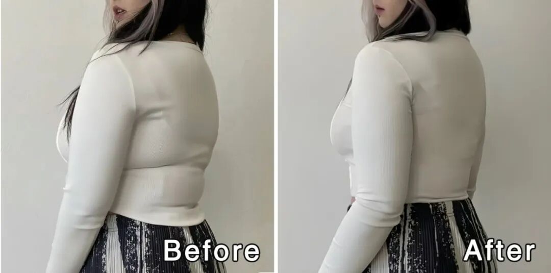 给大家看个对比:胸型正了、圆了,是不是自然而然把整个人身形都“收窄”了。