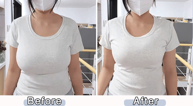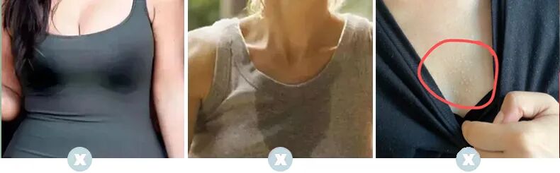 ▶甚至出了汗捂在胸前,闷出臭汗味