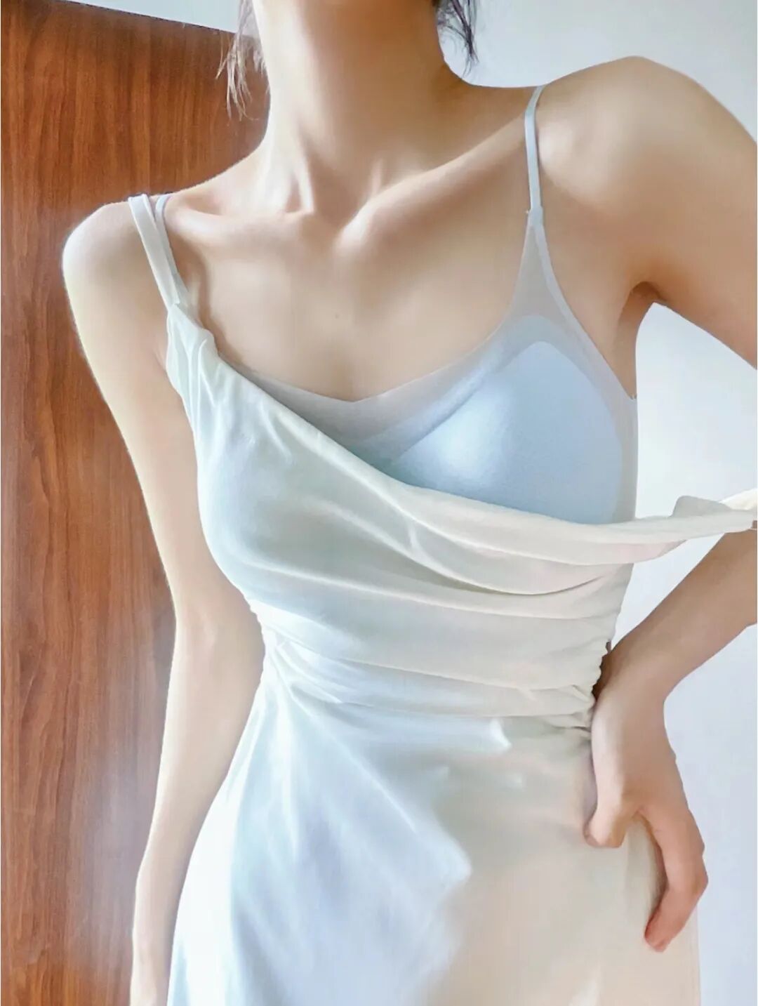 穿肩带稍宽一点的吊带/背心时,你可以直接把它穿在里头,肩带足够细,能隐形到毫无破绽。也比普通的无肩带内衣、胸贴更有安全感一点儿~