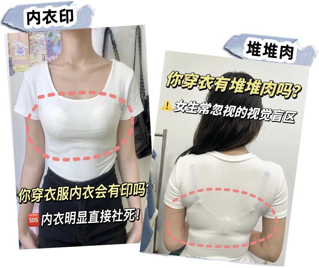 而其实我们在穿无痕内衣时,基本上宣传无痕但有设计“搭扣”的内衣,后背还是会显出形状。
