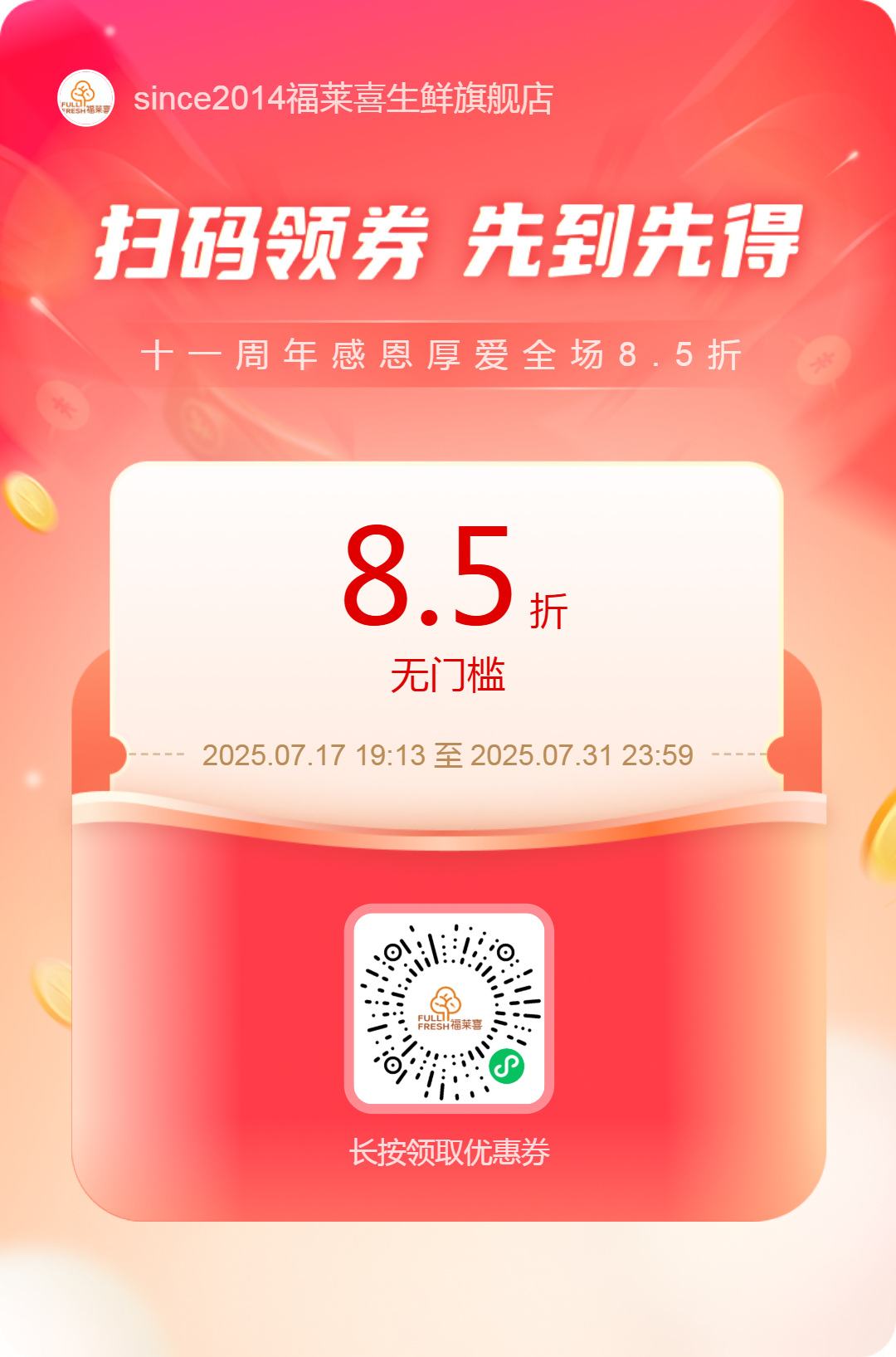 十一年,是四季流转的刻度,也是我们扎根土地、仰望星空的旅程。福莱喜生鲜愿继续做您值得信赖的“餐桌顾问”,以安全为基石,以健康为航标,以品位为风帆,在下一个十年、百年,继续守护从产地到餐桌的这份郑重承诺,与您共赴万千滋味的至美人生。