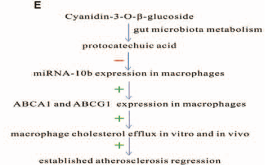 肠道细菌还可以生成一些有益的代谢产物。比如一些食物中可以在肠道菌的作用下,生成原儿茶酸。而原儿茶酸就可以通过促进巨噬细胞的胆固醇的流出,从而减轻早期动脉粥样硬化的病情【7】。