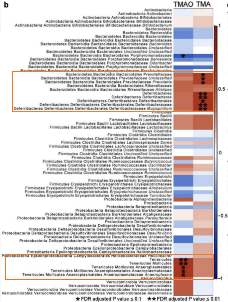 这些细菌的共同特征是,都含有可以产生TMAO的基因,具体为CutC/D, CutA/B和YeaW/X。