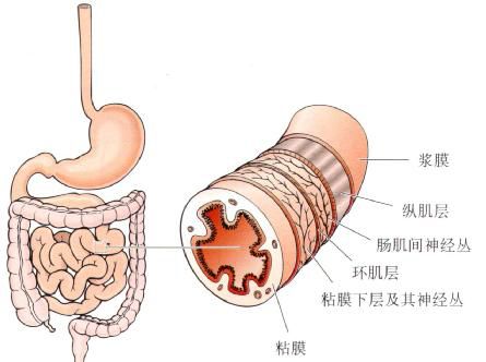 从营养的角度讲,靠外侧的三层结构并没有参与营养吸收。只有位于内侧的黏膜有最大的作用,因为营养成分一旦越过这个单层黏膜上皮细胞,直接面临的就是毛细血管。也就是说,从肠道内部,到可以回收和吸收营养的毛细血管,中间只有一层单薄的上皮细胞。