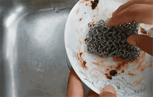 将洗锅网套在手上,清洗充满油污的锅碗,只需3秒,就可轻松把油渍全部“刮洗”下来!