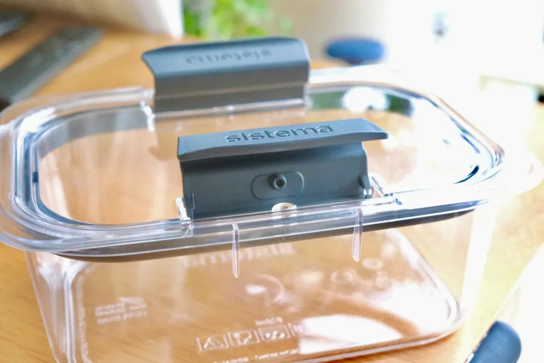 它这个打开的设计就贴心很多:打开搭扣就能排气,盖子四个角也有像小耳朵一样的设计方便掰开。