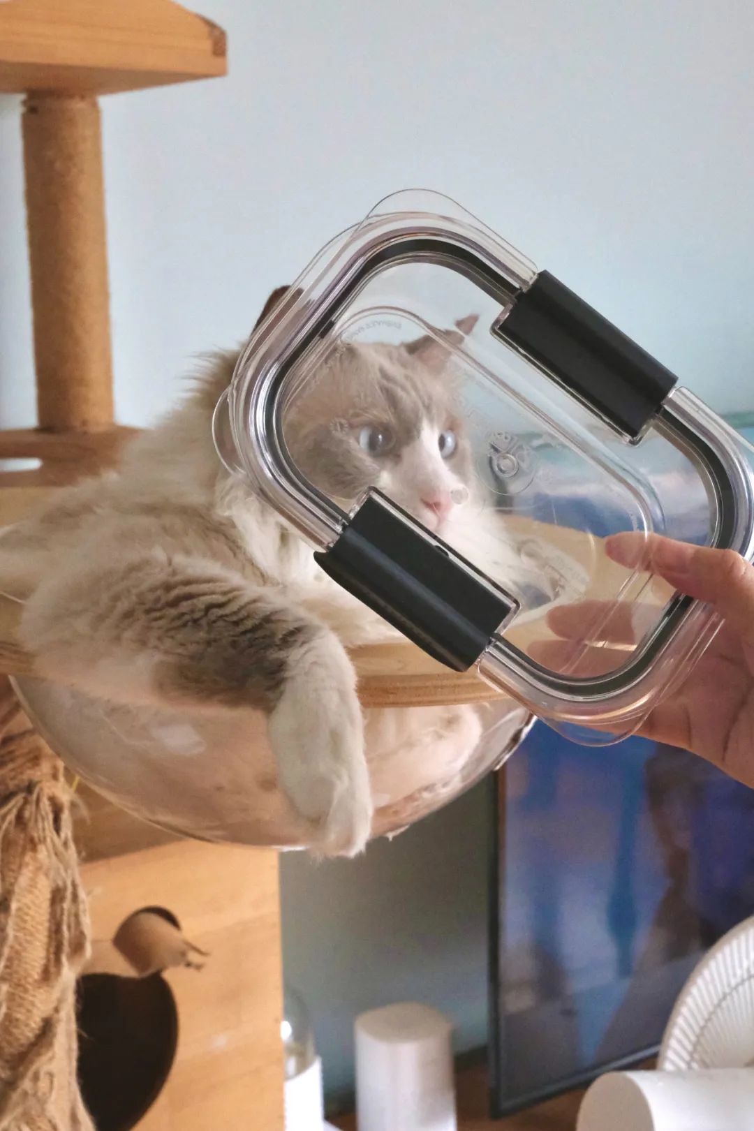 扣紧后盒子里就成了完全密封的空间。我原本也担心它跟之前用的一些保鲜盒一样,装热的食物后,盖子被吸得太严实,打开都要费半天劲。我一玻璃保鲜盒就这样从手上飞了出去,就剩个盖子还舍不得扔。