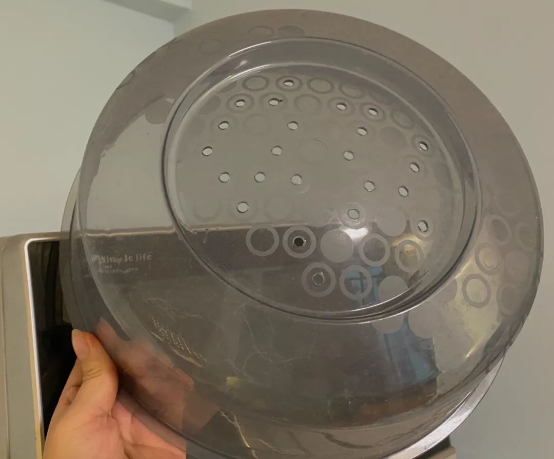 我之前的解决方案是额外买了个宜家的加热盖,就跟个大锅盖一样👇,但总不能带去办公室吧。市面上也有可以带盖加热的,但大多还是要掀开来用。