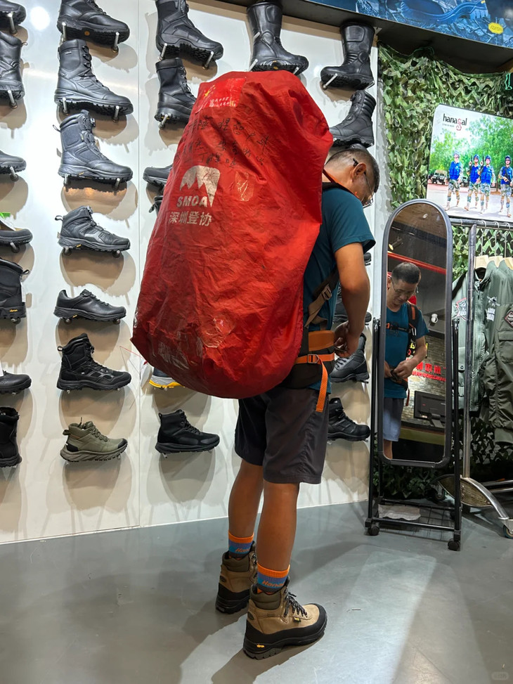 这个70+20L的背包,把这位看上去的“小个子”几乎全遮盖住了,不过看这个大腿的肌肉是杠杠滴。