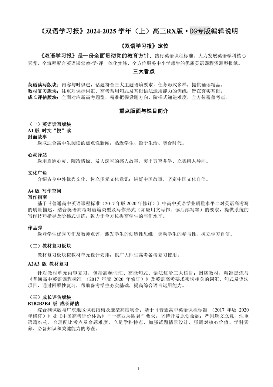 高中英语样报 高三 RX版 DG专版 第1期