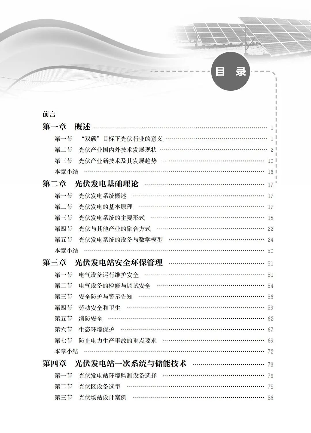本书是根据中国能源化学地质工会全国委员会、中国职工技术协会举办的全国光伏技能竞赛要求,组织中国华能集团有限公司、中国华电集团有限公司、中国大唐集团有限公司、国家电力投资集团有限公司、国家能源投资集团有限责任公司、中国长江三峡集团有限公司、中国绿发投资集团有限公司、中国广核集团有限公司等单位的光伏领域专家参加编写,全书内容主要包括光伏发电系统的基础理论、安全环保、电气一次与储能、电气二次、接入电网、运行检修、生产操作等内容。本书力求理论与工程实践相结合,既有理论设计、分析与仿真,又有实践与运行实操的拔高。