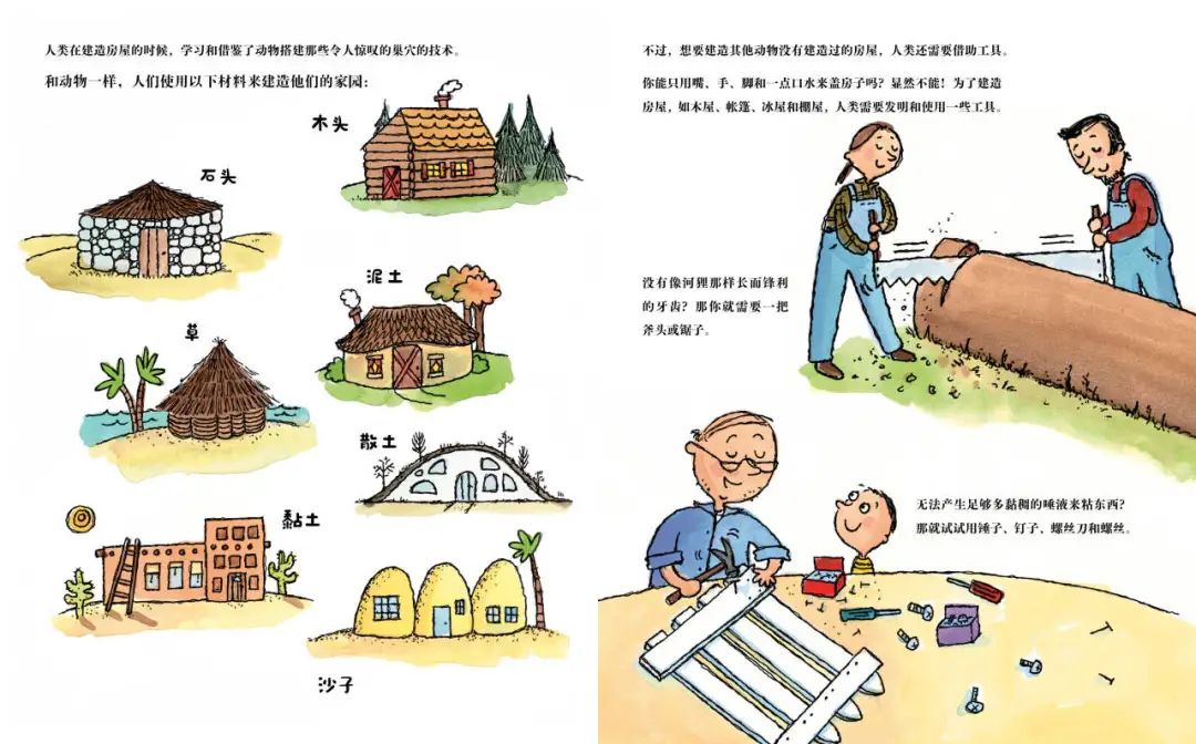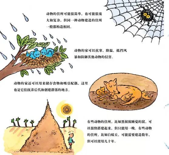 孩子会更明白为什么人类是可以学习和借鉴动物搭建巢穴的技术,成为唯一可以建造出多种类型房屋的生物。