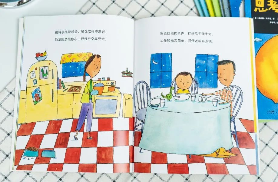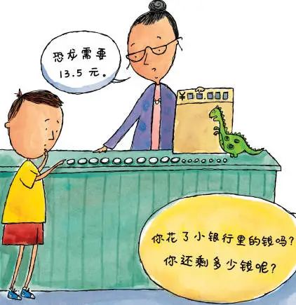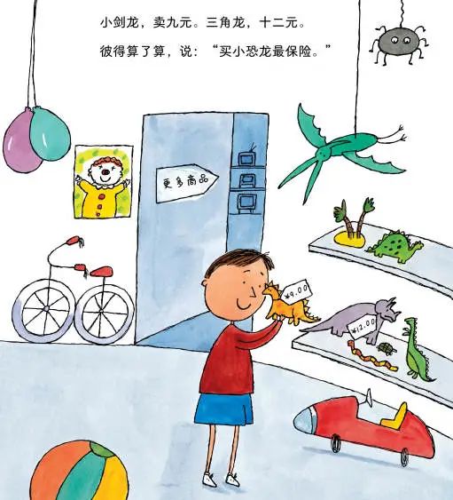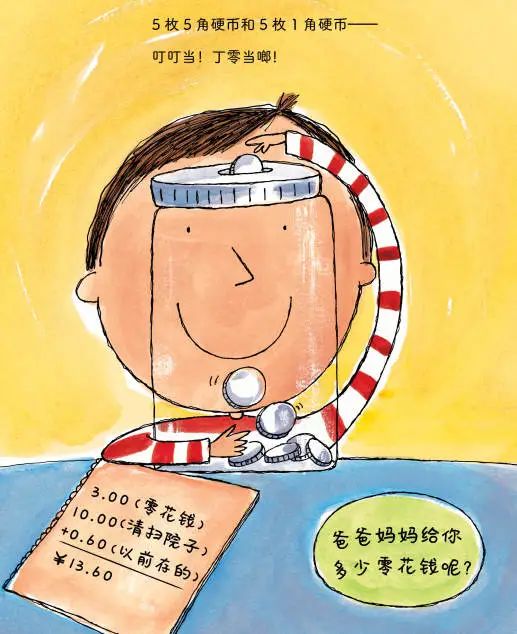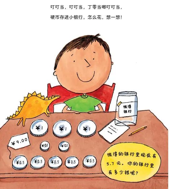 还有《用硬币买恐龙?!》,从第一页开始就邀请孩子一起来数数、算零花钱。