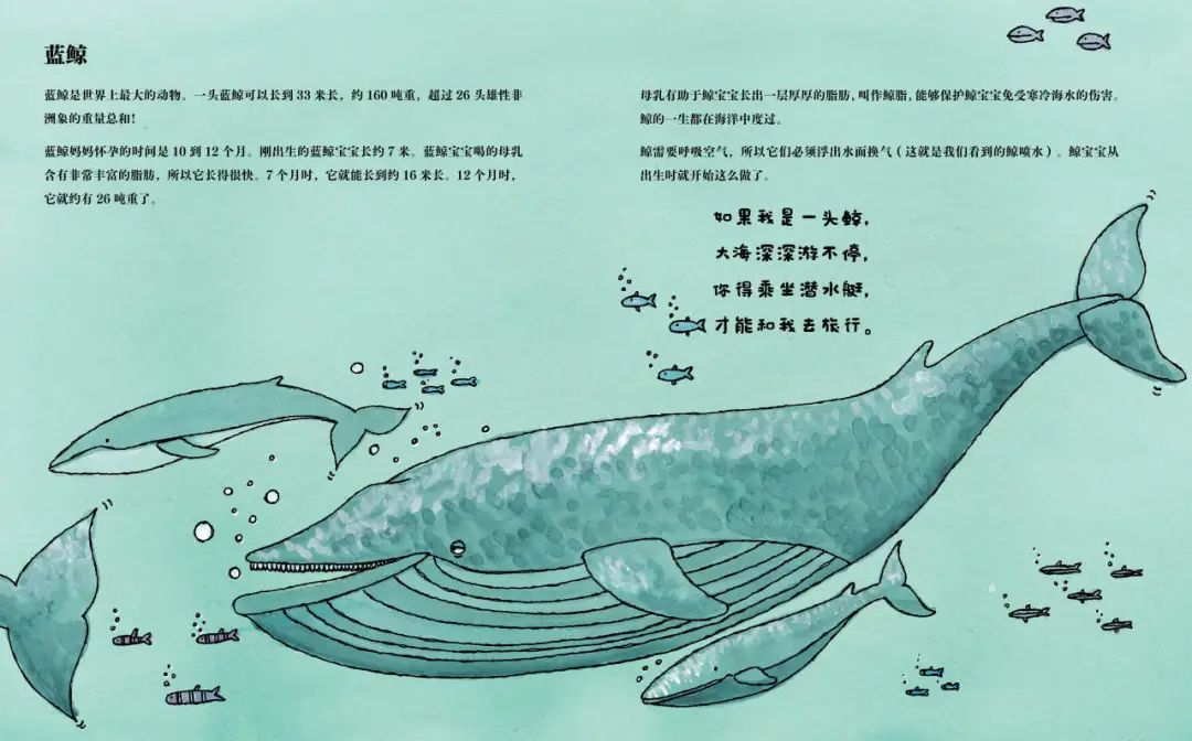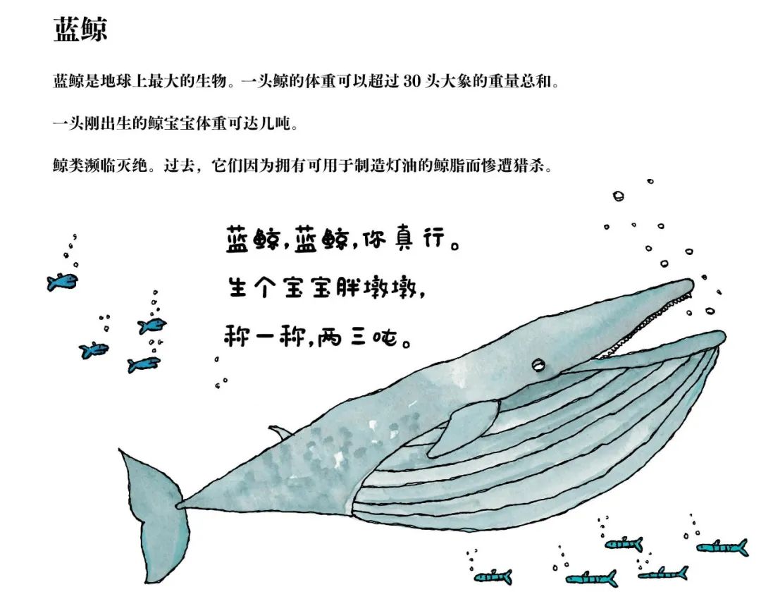 以及像蓝鲸、海牛、美洲鹤等动物正处在濒危边缘,提醒孩子思考人与动物、人与自然的关系。