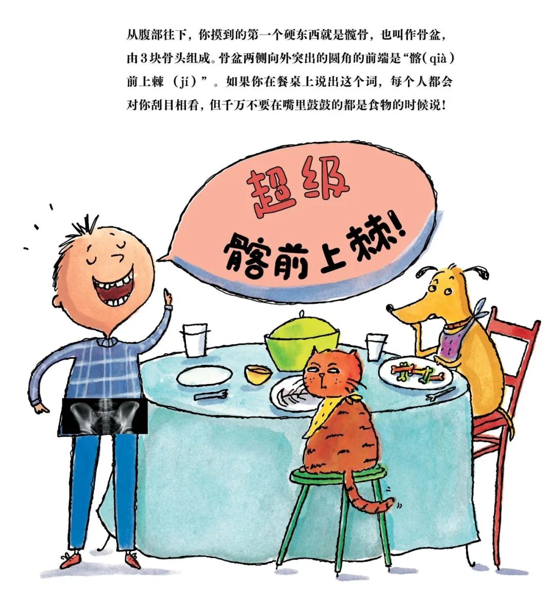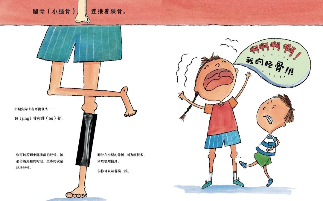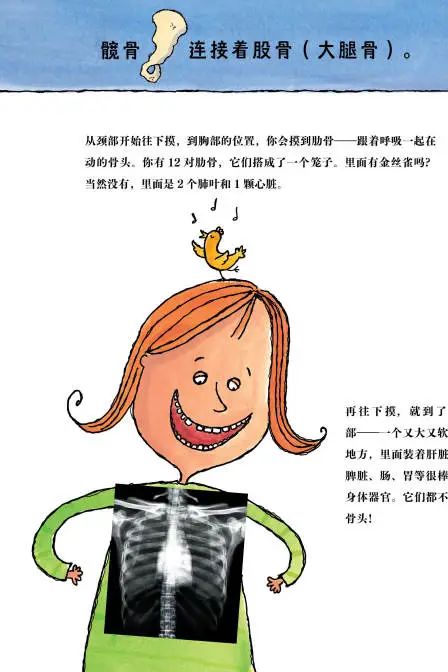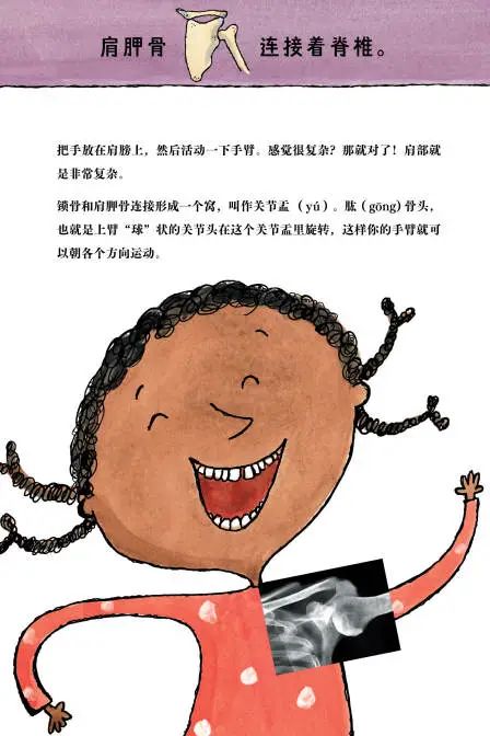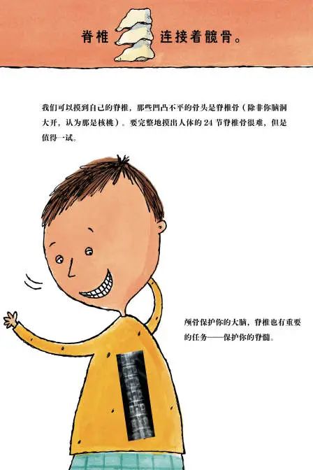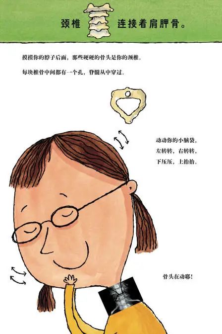 跟着书里的动作指导,还可以边读边和孩子用小手摸摸看自己的骨头,感受会更深~