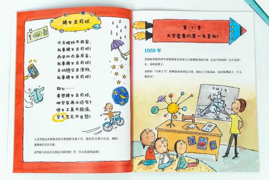 比如这本可以激发孩子无限遐想的太空入门书——《骑自行车去月球?!》: