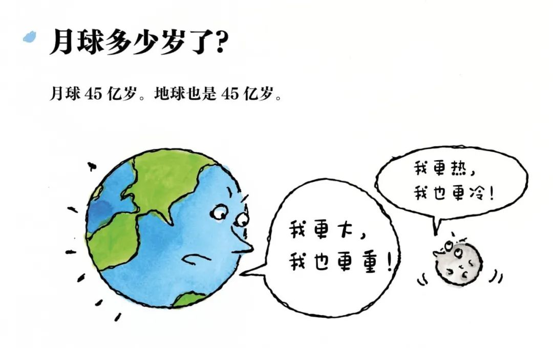 但目前的研究显示地球和月球的年龄是差不多的,都是45亿岁,所以吵架时地球只好说自己更大更重,而不是之前的更大更老。