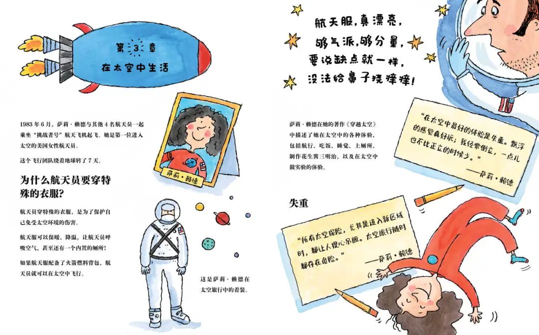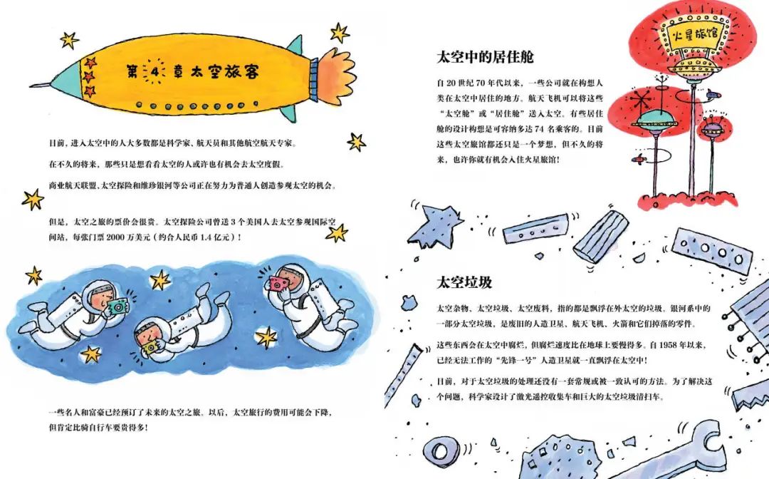就这样一环扣一环,通篇读起来自然又引人入胜,既让孩子领略太空和科学探索的乐趣和美妙,也在孩子心中播下航天梦的种子。