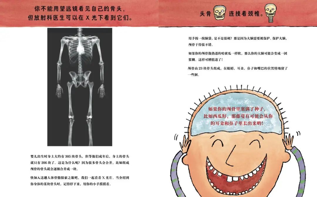 从头到脚206块骨头,它们分别长什么样、在哪里、能做什么......从上往下跟着书本一路探索,瞬间一目了然。