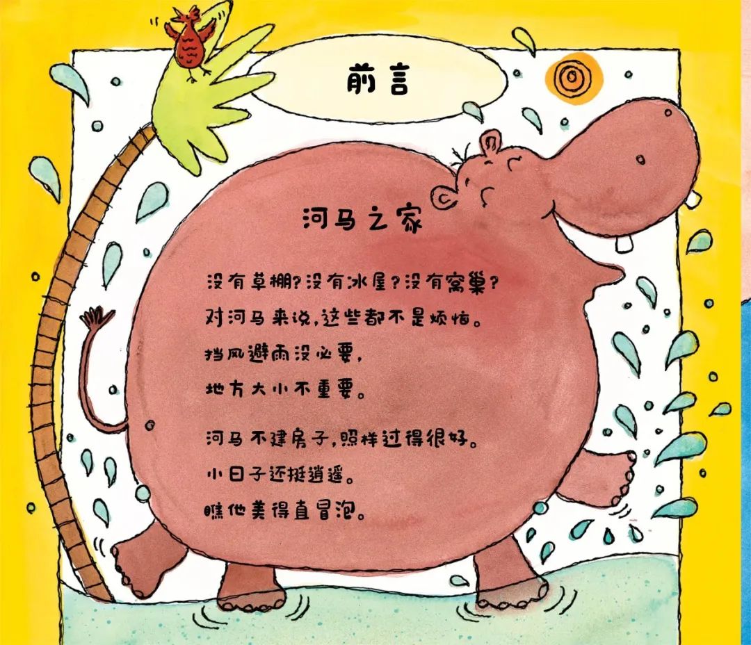 比如《让河马建房子?!》里,蜗牛的壳、鸟类的窝、蜜蜂的巢、鼹鼠的洞……动物们建房子的本领令人惊叹!