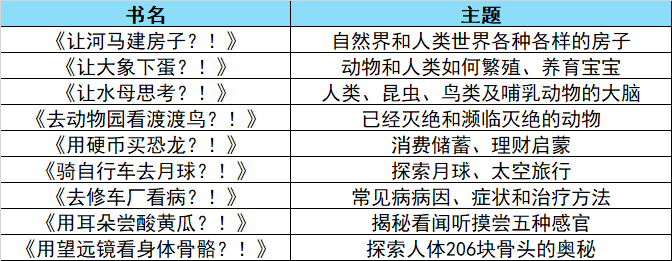 9本书,每本都通过一条惊掉下巴的星期八趣闻,来引出小朋友们爱问为什么背后都超感兴趣的一系列奇妙有趣的科学知识。