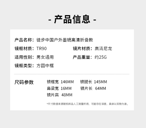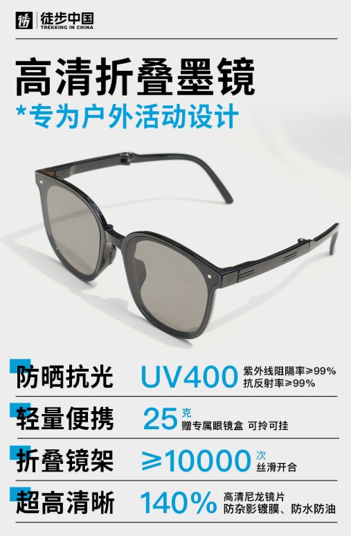 徒步中国定制折叠墨镜:无感佩戴,清晰视界,户外随行