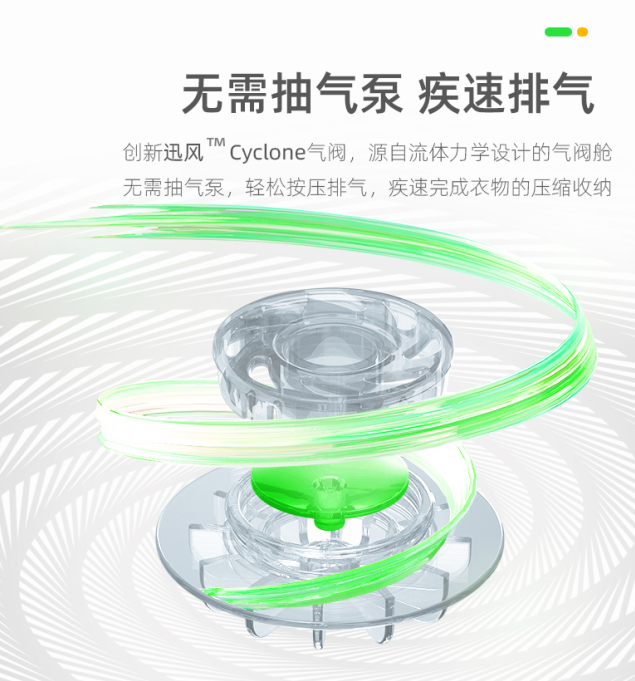 常规的压缩袋气阀因为技术原因,气体排出的阻力太大,所以才衍生出各种抽气工具。比如手泵,又累又慢...