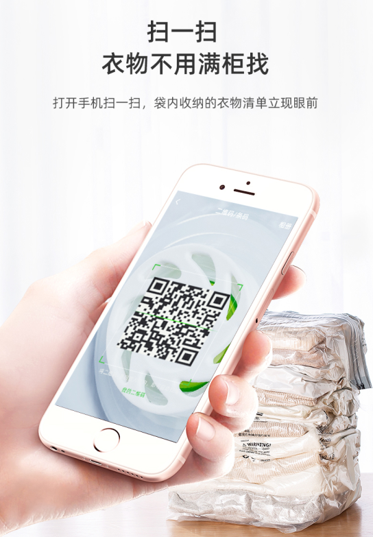 3、二维码智能收纳,手机一扫,衣物一目了然!