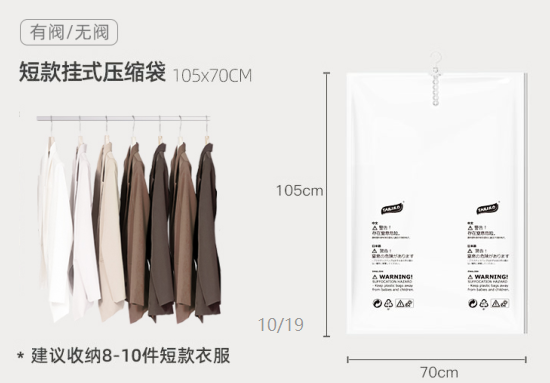 还能直接挂在衣柜上,原地压缩,衣柜都要宽敞不少~
