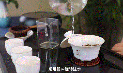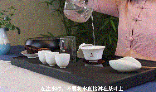在注水时,需要沿着盖碗壁注入,切不可直接淋于茶叶上。